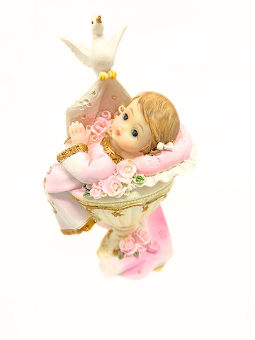Dekofigur Baby am Taufbecken rosa Größe: ca. 12×6,5 cm