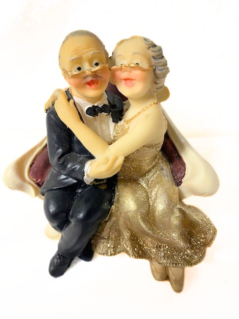 Goldhochzeitspaar, sitzend, Umarmung, Dekofigur