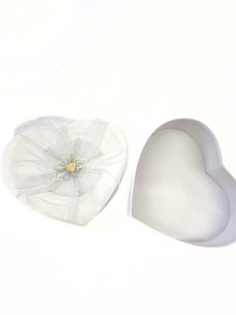 Herzdose weiß mit Tüll