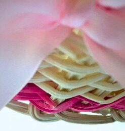 rosa Korbgeflecht ca. 0,5 cm hoch und rosa Schleife eingearbeitet