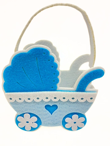 Geschenktäschchen „Kinderwagen“ aus Filz, hellblau