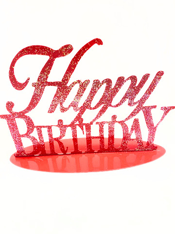 Metallaufsteller Happy Birthday, rot mit Glitzer