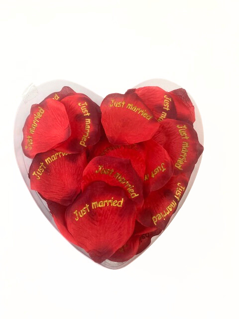 Rosenblätter Textil, rot „Just married“