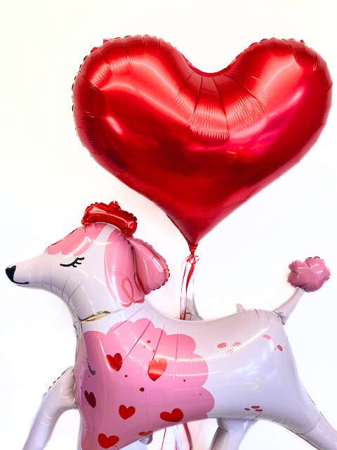Set „Pudel Valentin“ und Folienballon Herz