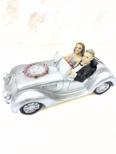 Silberhochzeit Spardose „Auto mit Hochzeitspaar“